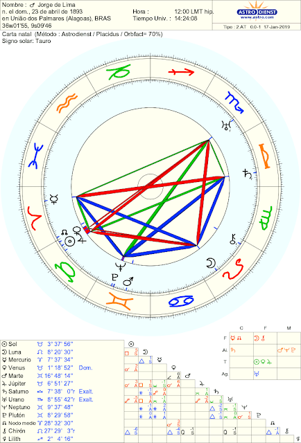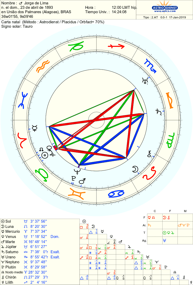 Fijémonos como en la carta de Heitor Neptuno en Tauro es regente esotérico de su importantísima Luna/Saturno en Cáncer y Júpiter en Escorpión exotérico de su Sol/Marte.